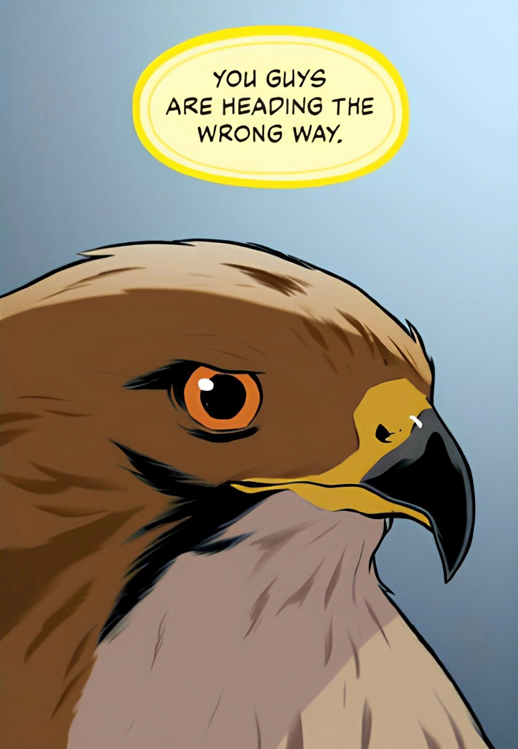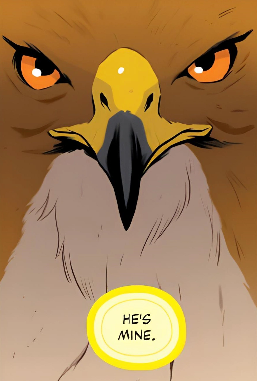 While trying to find some food, Tobias is injured and about to be eaten by a raccoon. At that moment, the Ellimist restores Tobias's ability to morph, but does not return him to human form. Tobias is enraged, accusing the omniscient being of not keeping his promise, and then quickly acquires the raccoon and flies away.[12]